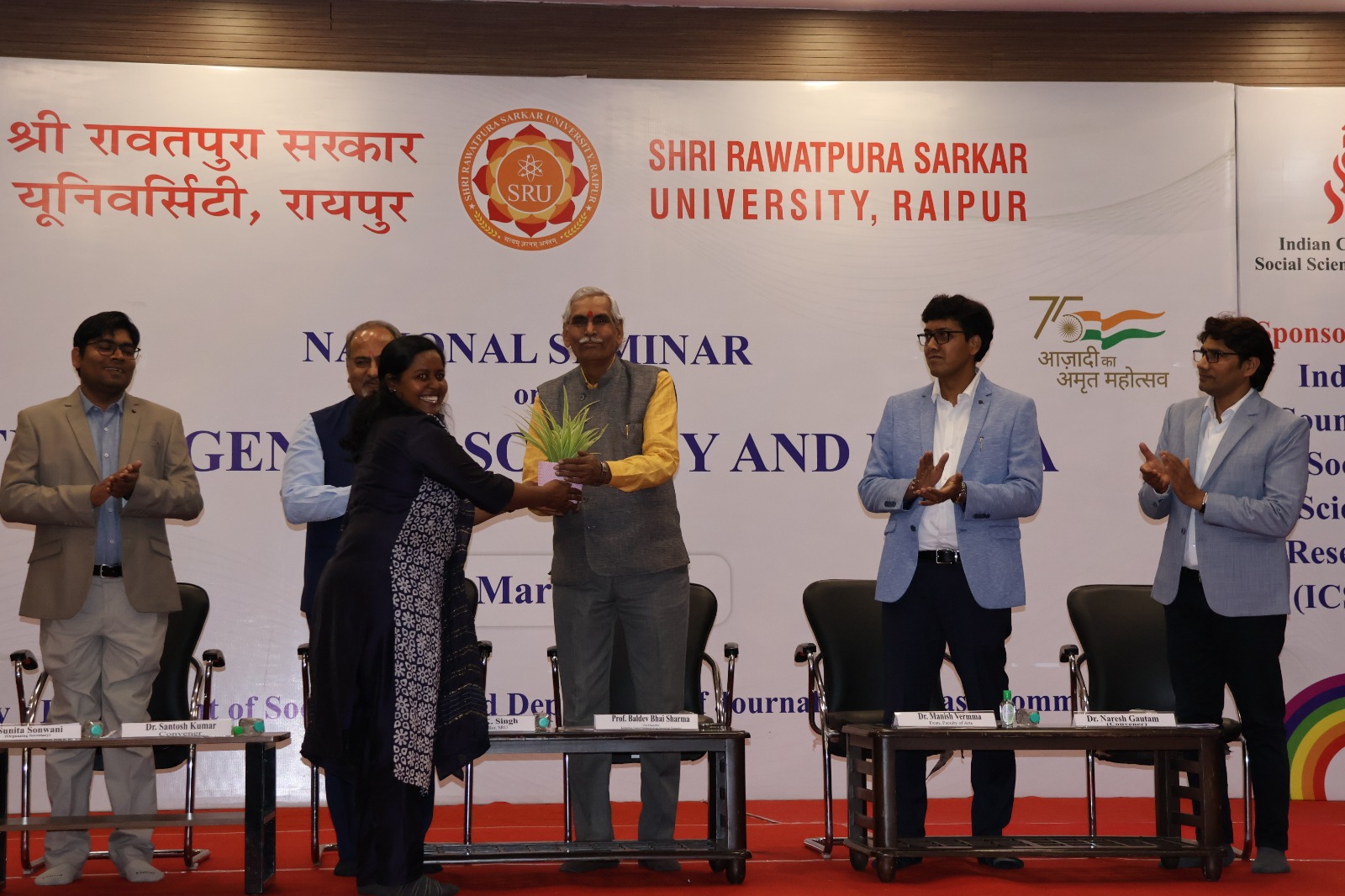 रायपुर।। श्री रावतपुरा सरकार विश्वविद्यालय में आईसीएसएसआर द्वारा प्रायोजित दो दिवसीय राष्ट्रीय संगोष्ठी “ट्रांसजेंडर समाज और मीडिया” विषय पर 20-21 मार्च 2023 को आयोजन किया गया। कार्यक्रम का आयोजन सामाज कार्य विभाग और पत्रकारिता एवं जन संचार विभाग के तत्वावधान में किया गया, जो इंडियन काउंसिल ऑफ सोशल साइंस रिसर्च (आईसीएसएसआर) द्वारा प्रायोजित है। दो दिवसीय राष्ट्रीय संगोष्ठी के बारे में कार्यक्रम संयोजक डॉ. संतोष कुमार ने बताया कि ट्रांसजेंडर लोग समाज में अनेक प्रकार के समस्याओं का सामना करते हैं जिसके प्रति समाज में लोगो को जागृत करना है। राष्ट्रीय संगोष्ठी 17 राज्यों से लगभग 150 लोगों ने अपनी प्रतिभागिता दर्ज़ कराई। दो दिवसीय राष्ट्रीय संगोष्ठी में पाँच पुस्तकों का विमोचन किया गया जिसमें से दो राष्ट्रीय संगोष्ठी से संबंधित है और तीन पुस्तकें विश्वविद्यालय के सामाज कार्य विभाग और पत्रकारिता एवं जन संचार विभाग के शिक्षकों द्वारा अलग अलग विषय पर लिखी गई हैं।