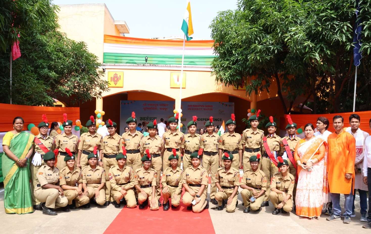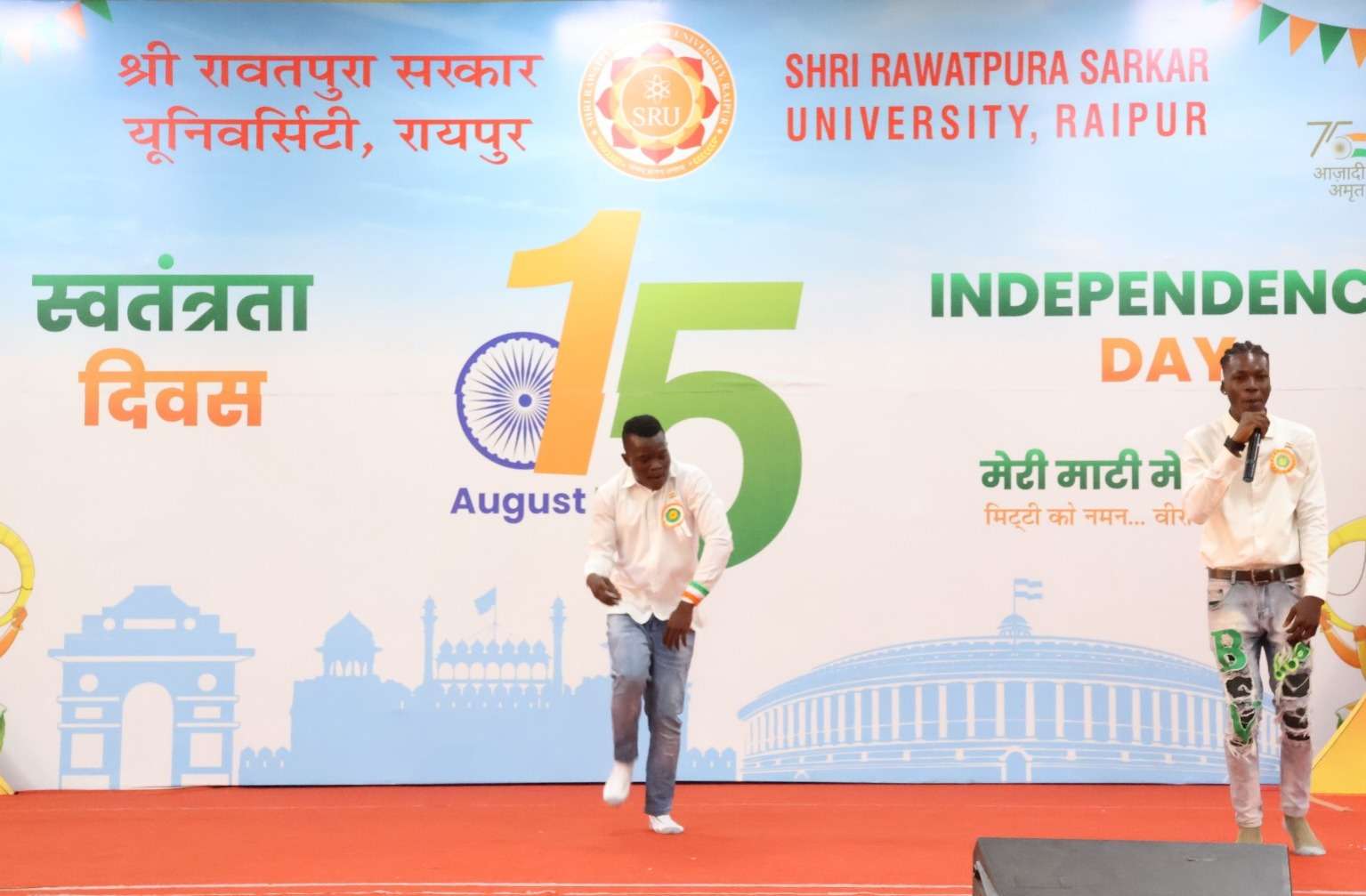 रायपुर।। श्री रावतपुरा सरकार विश्वविद्यालय में स्वतंत्रता दिवस के अवसर पर कार्यक्रम का आयोजन किया गया। कार्यक्रम में सुबह तिरंगा रैली निकाली गई एवं ध्वजारोहण किया गया तत्प्श्चात सांस्कृतिक कार्यक्रम की शुरुआत राज्य गीत और दीप प्रज्वलन के साथ की गई। विद्यार्थियों ने सांस्कृतिक लोक नृत्य और गीत की हर्षो उल्लास के साथ प्रस्तुति दी साथ ही विश्वविद्यालय इंटरनेशनल विद्यार्थियों ने भी स्वतंत्रता दिवस पर अपनी रचनात्मकता दिखाई एवं भारतीय गीत “रघुपति राघव राजा राम” पर दिखाया अपना शानदार नृत्य इसके साथ ही “भारत माता की जय” का लगाया जयकारा। इस अवसर पर विश्वविद्यालय के प्रतिभाशाली स्पोर्ट्स के विद्यार्थयों प्रशस्ति पत्र दिया गया।