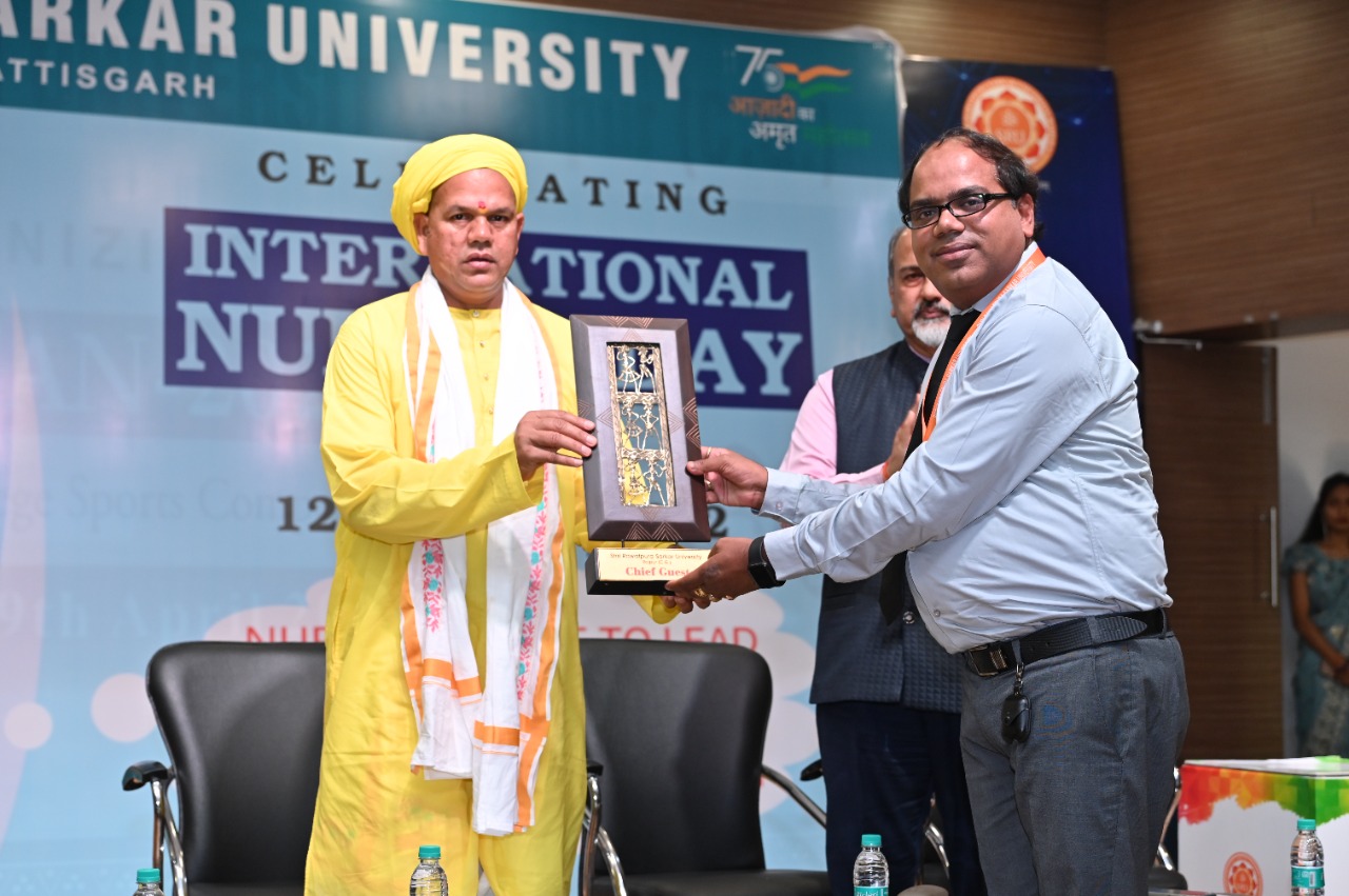 रायपुर।। श्री रावतपुरा सरकार विश्वविद्यालय में श्री रविशंकर जी महाराज के आशीर्वाद से अंतर्राष्ट्रीय नर्स दिवस पर कार्यक्रम का आयोजन किया गया । ये आयोजन विश्वविद्यालय परिसर के आस्था मंच में विश्वविद्यालय के कुलपति डॉ. एस.के. सिंह, कुलसचिव डॉ प्रताप सिंह के मार्गदर्शन में आयोजित हुआ । कार्यक्रम की शुरुआत विश्विद्यालय के कुलाधिपति अनंत विभूषित रविशंकर जी महाराज के कर कमलों की उपस्थिति में राष्ट्रीय गान और दीप प्रज्वलन से की गई। कार्यक्रम की मुख्य अतिथि गवर्नमेंट ऑफ नर्सिंग कॉलेज की प्रोफेसर एवं नोडल ऑफिसर नीतू त्रिपाठी मौजूद रही।