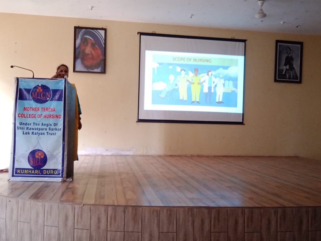 रायपुर।। श्री रावतपुरा लोक कल्याण ट्रस्ट के अध्यक्ष श्री रविशंकर जी महारज जी के आशीर्वाद से मदर टेरेसा कॉलेज ऑफ नर्सिंग, कुम्हारी ने 20 से 21 दोपहर के सत्र में बीएससी नर्सिंग प्रथम वर्ष के छात्रों के लिए अभिविन्यास कार्यक्रम का आयोजन किया।