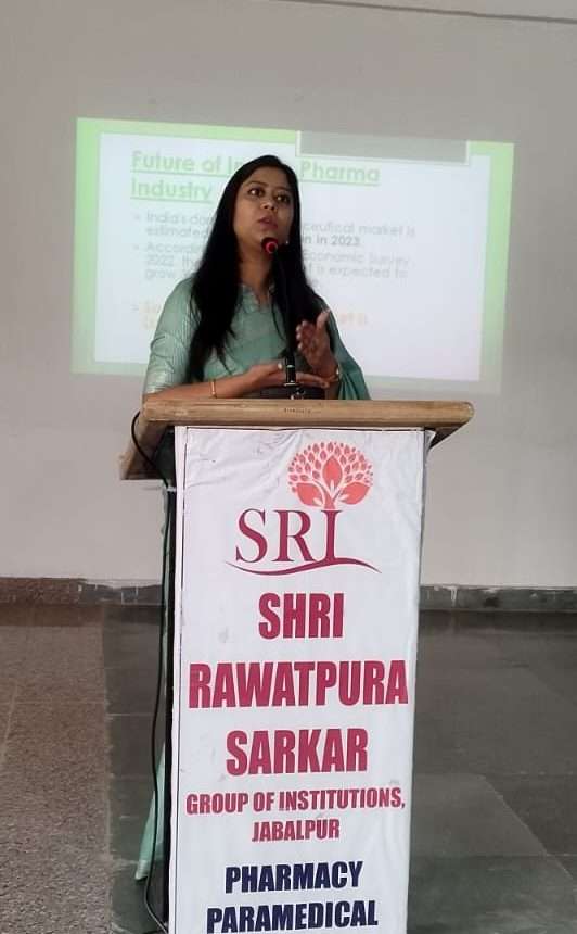 जबलपुर।  श्री रावतपुरा सरकार इंस्टिट्यूट ऑफ़ फार्मेसी जबलपुर में फार्मा प्रबंधन पर एक विशेष वार्ता का आयोजन किया गया।  डॉ. नेहा शर्मा चौधरी, हेड करियर डेवलपमेंट सेंटर मोर्डर्न ग्रुप ऑफ़ इंस्टीटूशन्स इंदौर इस विशेष वार्ता का संचालन किया ।