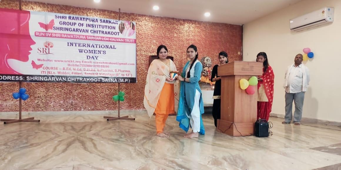 चित्रकूट | श्री रावतपुरा सरकार ग्रुप ऑफ़ इंस्टीट्यूशनस चित्रकूट के बी.एड.विभाग एवं फार्मेसी में अन्तर्राष्ट्रीय महिला दिवस के अवसर पर पेंटिंग, रंगोली, मेहंदी, निबंध लेखन जैसी विभिन्न प्रतियोगिताओं का आयोजन कर सार्थक सन्देश दिए गया। परिसर में कार्यक्रम की शुरुआत स्वागत गीत और माँ सरस्वती की वंदना के साथ हुई। मुख्य अतिथि डॉ. मोनिका ने उपस्थित छात्र छात्राओं को महिलाओं की सुरक्षा सम्बंधित जानकारी दी साथ ही महिला दिवस पर विशेष संदेश देकर महिला सशक्तिकरण के बारे में चर्चा की।