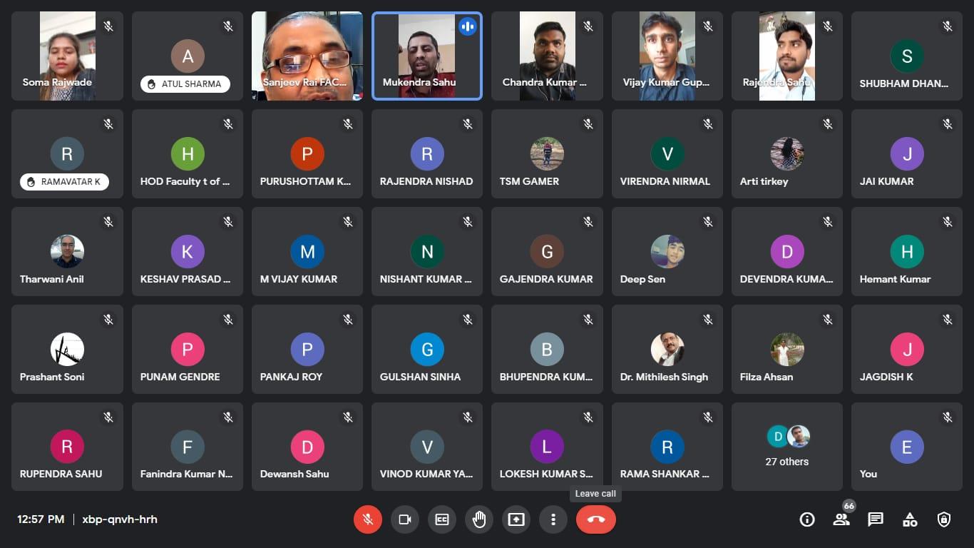वही वेबिनार के अंत में विद्युत विभाग के सहायक प्रोफेसर मुकेंद्र कुमार साहू ने धन्यवाद ज्ञापन दिया। इस मौके पर इंजीनियरिंग विभाग के डीन डॉ. आर.आर .एल. बिराली मौज़ूद रहे। वही वेबिनार का संचालन इंजीनियरिंग विभाग के डॉ. मिथिलेश सिंह ने किया। वही वेबिनार में लगभग 100 स्टूडेंट्स उपस्थित रहे ।