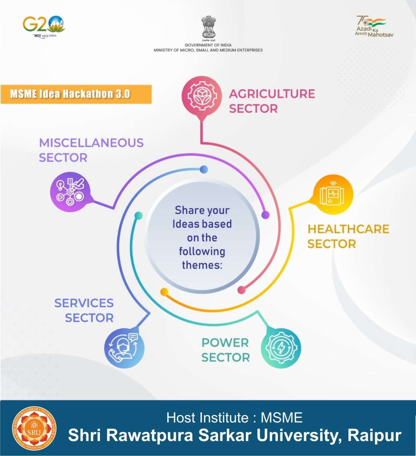 रायपुर।। श्री रावतपुरा सरकार विश्वविद्यालय को एमएसएमई मंत्रालय की “एमएसएमई इनोवेटिव योजना” के तहत ‘एमएसएमई आइडिया हैकथॉन 3.0 (महिला)’ के आयोजक संस्थान के रूप में मान्यता दी गई है । केन्द्रीय सरकार नए भारत का सुदृढ़ नींव स्थापित करने के दृष्टिगत महिला सशक्तिकरण पर एमएसएमई नवाचार योजना के तहत ध्यान केंद्रित कर रही हैं । इस योजना का उद्देश्य नवाचार को बढ़ावा देना, उद्यमशीलता के विचारों को प्रोत्साहित करना और महिलाओं को अपनी प्रतिभा प्रदर्शित करने तथा MSME क्षेत्र में उपयोगी योगदान देने के लिये एक मंच प्रदान करना है।