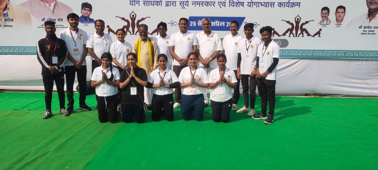 रायपुर।। श्री रावतपुरा सरकार विश्वविद्यालय के योग विभाग के विद्यार्थियों ने छत्तीसगढ़ योग आयोग के पंचम स्थापना दिवस के अवसर पर 25 से 27 अप्रैल को पंडित दीनदयाल उपाध्याय ऑडिटोरियम रायपुर में आयोजित तीन दिवसीय राज्य स्तरीय योगासन प्रतियोगिता सह योग सम्मेलन में भाग लिया।