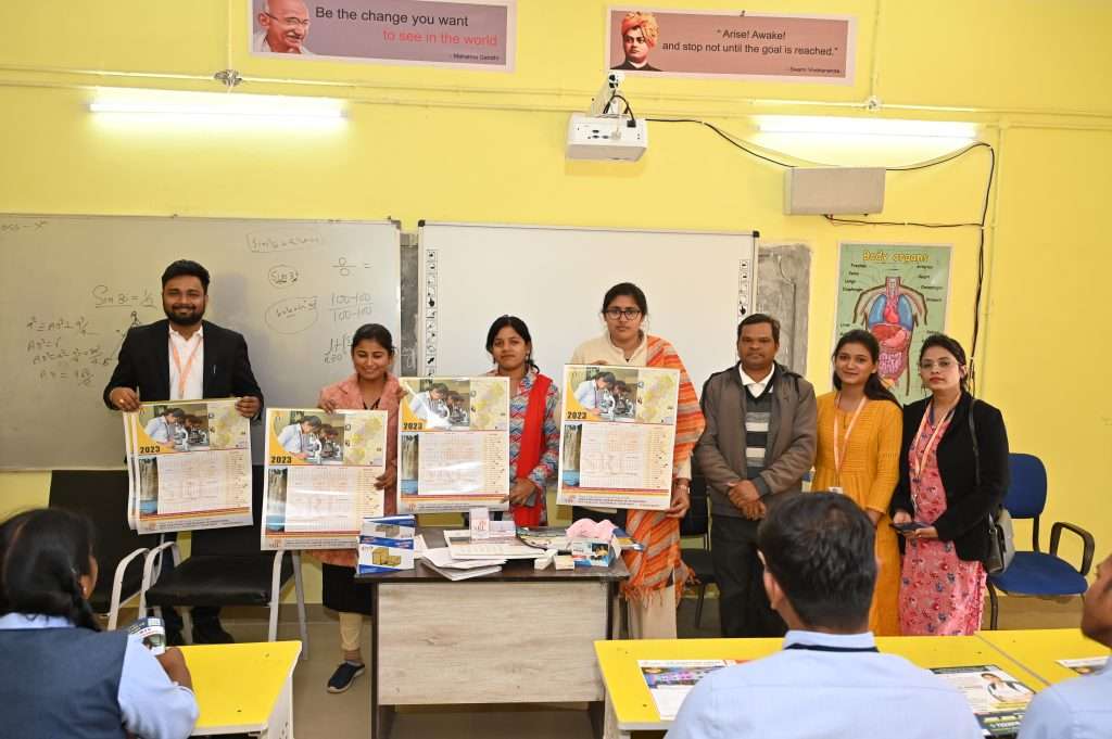 बच्चों से मिलने और बात करने के बाद टीम द्वारा स्कूल के शिक्षकों को रावतपुरा सरकार ग्रुप ऑफ़ इंस्टीटूशन्स का नूतन कैलेंडर भेंट किया गया।