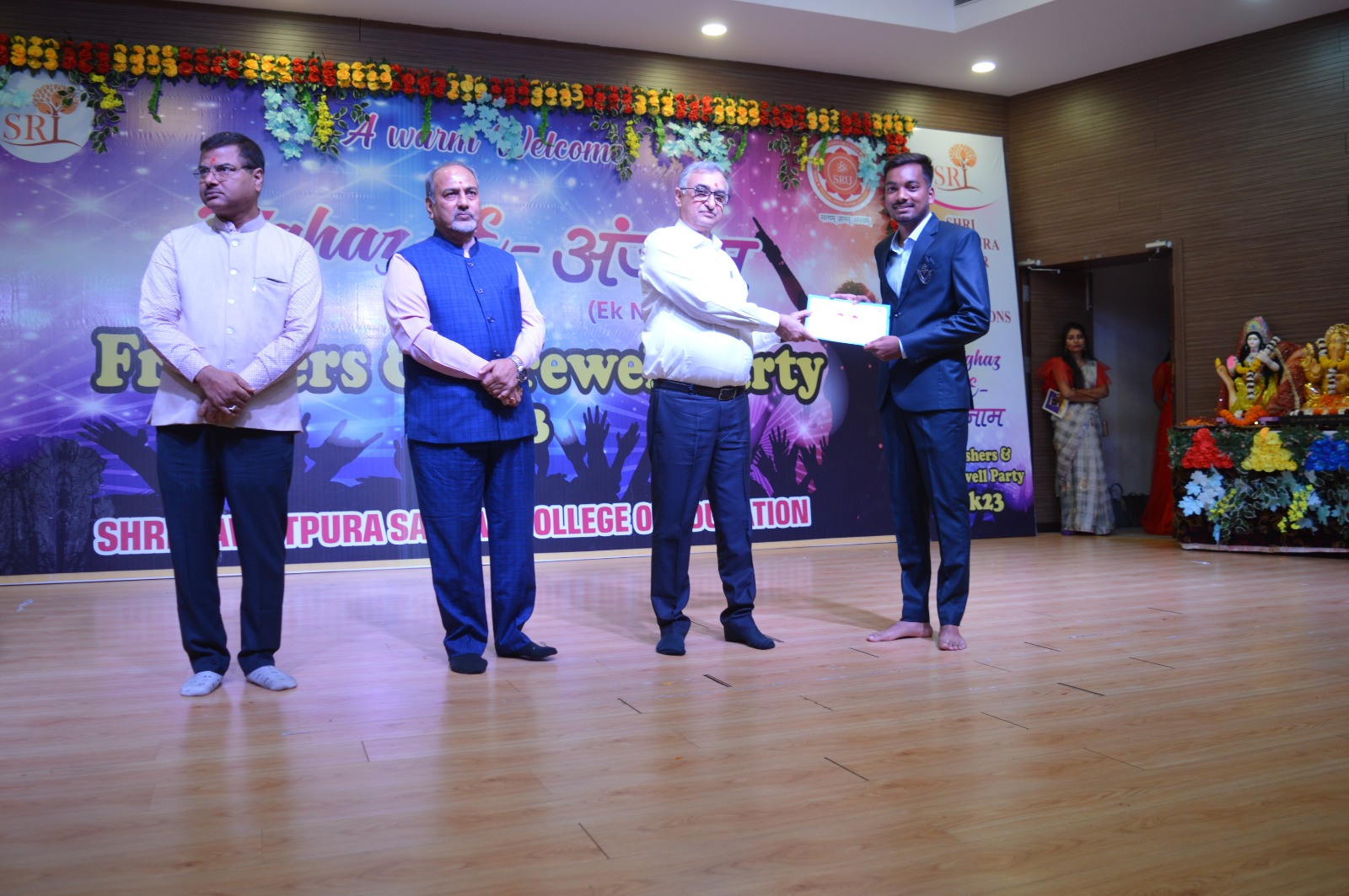 रायपुर।। श्री रावतपुरा सरकार यूनिवर्सिटी के शिक्षा विभाग में 7 फरवरी को स्वागत एवं विदाई समारोह (आगाज़ -ए-अंजाम) का आयोजन किया गया। कार्यक्रम में नवप्रवेशित बीएड, डीएलएड व स्पेशल बीएड के छात्र-छात्राओं का स्वागत किया गया, वही अंतिम वर्ष के छात्र छात्राओं को विदाई दी गई। कार्यक्रम में मार्गदर्शक के रूप में श्री रावतपुरा सरकार विश्वविद्यालय के प्रति-कुलाधिपति हर्ष गौतम, कुलपति एस. के. सिंह, कुलसचिव प्रभारी मनोज कुमार सिंह शामिल हुए।