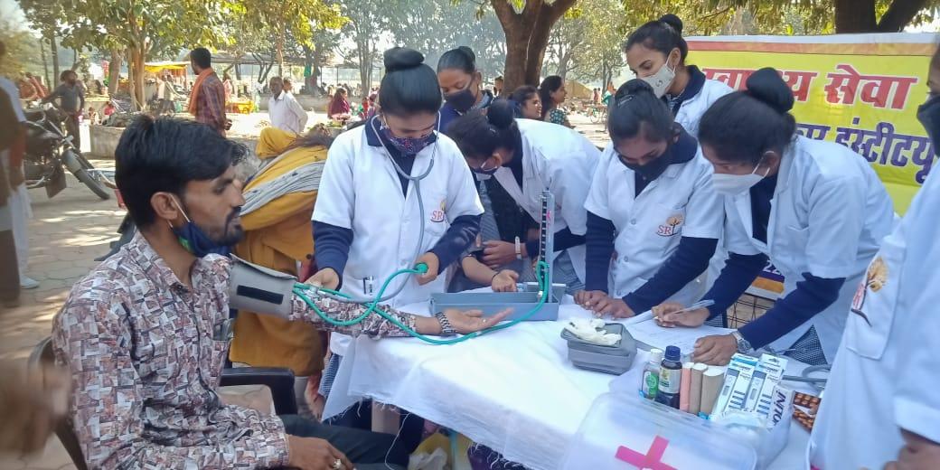 निःशुल्क स्वास्थ्य जांच शिविर : हजारों श्रद्धालुओं ने पहुंचकर उठाया लाभ, टीचिंग स्टाफ और छात्र छात्राओं का रहा सहयोग
