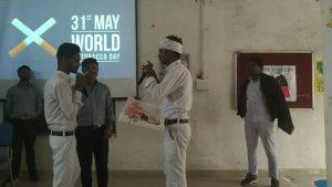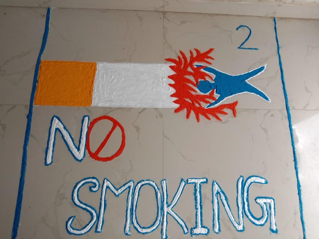 इस अवसर पर छात्रों ने सुंदर कलाकृतियां के साथ रंगोली बनाई जिसके माध्यम से तंबाकू के सेवन से जीवन को किस प्रकार नुकसान पहुंच रहा है उसके बारे में बताया गया। छात्रों ने पोस्टर के माध्यम से विश्व में किस तरह तंबाकू अपना पैर पसार रहा है एवं जनजीवन को प्रभावित कर रहा है। उसके संबंध में विस्तृत प्रदर्शन किया।